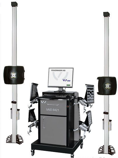 Стенд для проверки и регулировки геометрии подвески автомобиля, выполненный по технологии 3-х мерного изображения. Использование видеокамер, установленных на индивидуальных колоннах (что позволяет организовать проездной пост) подвижно, и пассивных световозвращающих экранов, устанавливаемых на колеса автомобиля. Самонаводящиеся на мишени камеры синхронно следуют за подъемником. Специальное программное обеспечение VAG с расширенной базой данных по всем автомобилям VAG и базой данных по всем автомобилям мира. Простая процедура проверки геометрии подвески автомобиля, что увеличивает пропускную способность стенда. Регулируемая в процессе работы высота видеокамер для работы на подъемнике без ограничения по высоте рабочей зоны. PC DELL c монитором 19", цветным принтером, встроенным модемом и сетевой картой, WindowsXP. Кабинет серого цвета RAL 7012.