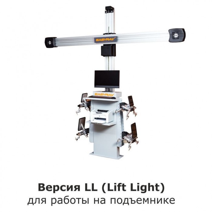 EASYRAY 200 LL – компьютерный 3D-стенд развал схождения, предназначенный для работ на подъемнике и яме. Данный стенд обладает высокой точностью и надежностью, расширенными возможностями для проведения проверки углов и их регулировки. Балка с двумя камерами расположена на лифтовой Т-образной стойке, что позволяет получить максимальную зону видимости камер, и проводить регулировки и измерения на любой высоте . Данная комплектация поставляется с стационарной облегченной полкой для PC, на которой стоит моноблок, 22-ух дюймовый экран, и цветной струйный принтер (опция).